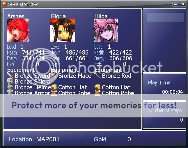 About the chars, right now we can only fit in 3, how about making a sort of ring menu-ish effect where you scroll through the characters, like 3 chars display at a time, but press the right arrow button and all the characters move one position to the left, making charcter 4 now visible where char 3 used to be. Some ppl use up to 6 party members, so... this would be perfect for them.