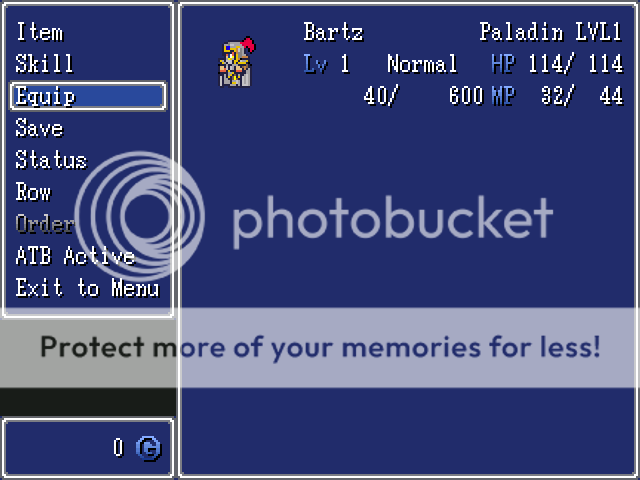 Abilities: Since there's no equipment you are able to learn and level up abilities that enhance the character. This part of the status menus shows a list of the abilities the character has. A more detailed menu allows you to level them up and modify them.