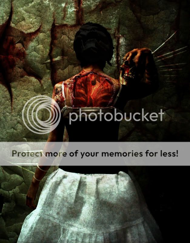They're all stock images someone else on deviantart has taken a photo of - I've just messed with it with contrast/brightness, sometimes even Hue and Saturation. Then added textures over the top, changing layer styles to make it really grungy and evil looking...added blood, and then some final touches. It usually turns out ok.