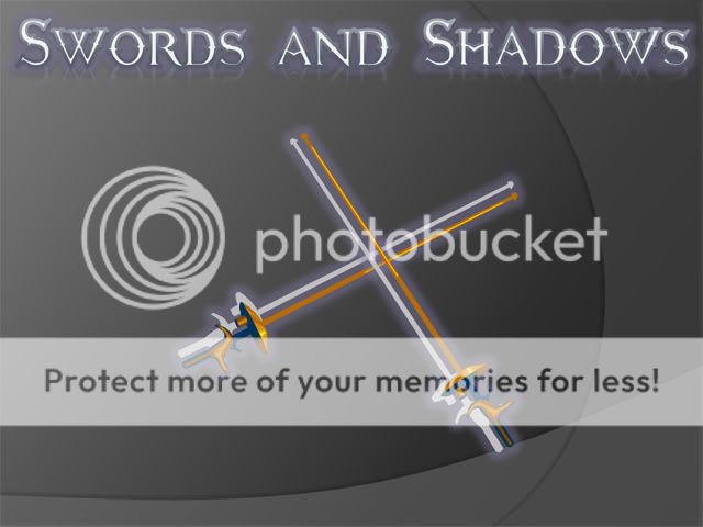 Image: 2 swords crossed like in a x formation with a purple or blue (prefer purple)shadow effect around it