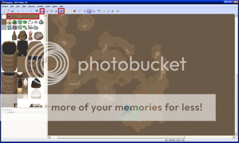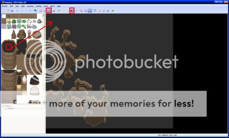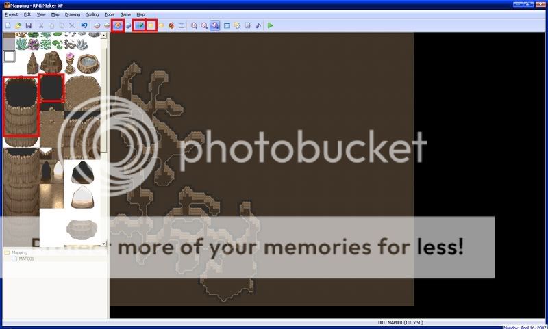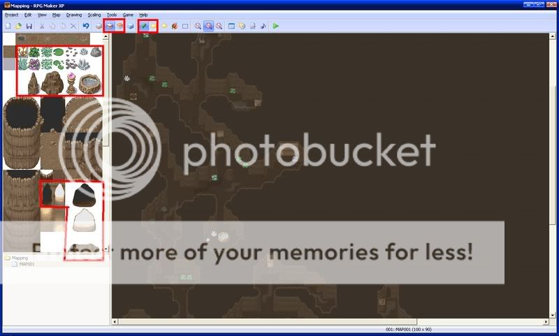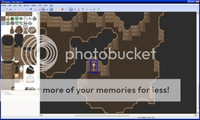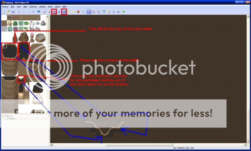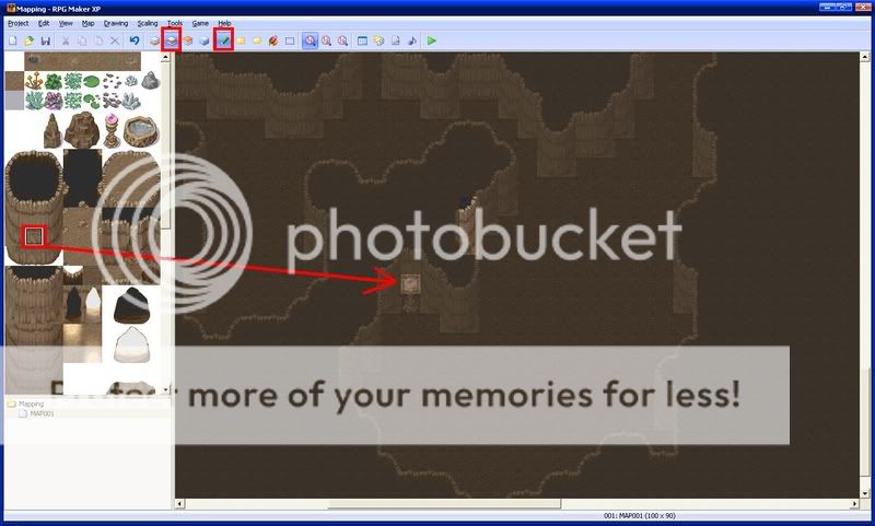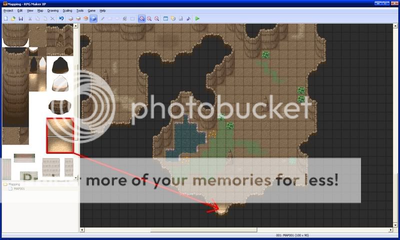 Next, put down cave auto tiles where they seem right. These make your cave look more realistic. Make sure they are on the first layer.