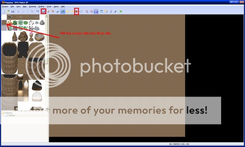 First, put down the cave floor tile using the flood fill tool. Make sure this is on the 1st layer.