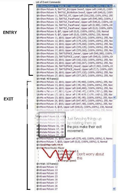 Throw that mere transition command out of the window, it's a disgrace to your game! For a refreshing animated battle intro, you can employ full use of picture manipulational events.