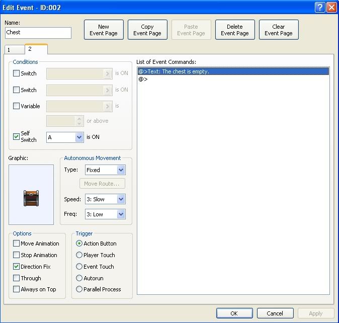 And YAY! We're done! As far as I know. We shouldn't have missed anything.... I've tried as hard as I've could and I've hoped you've learned how to make special chests. Since I explained some stuff, I hope you learned about functions of certain events as well! Good luck on your games!