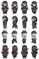 2) Just one sword (I've attached a copy of the weapon he's using in a PM to you. It's Huge but I've just been shrinking the weapons to like 12x50 or something to be proportionate to the battler, you can tweak it).