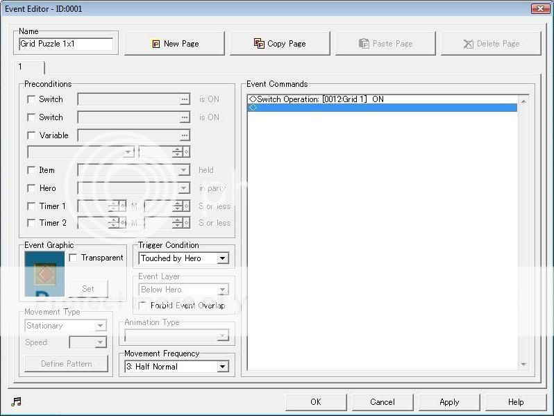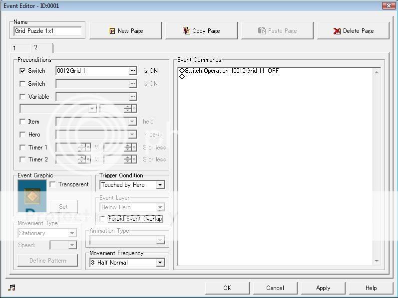 2.Now make a new page in the same event, make the preconditions if switch "Grid ON 1" is on. Put inside "Switch Operations" and turn it off.