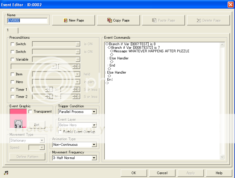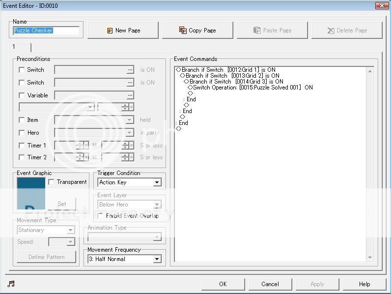3. Now that you got the puzzle, lets put the Checker....Make a new event, now put "Conditional Branch" if switch "Grid ON 1" is on, then inside of it put another "Conditional Branch" if switch Grid ON 2 is on, ect. Example: