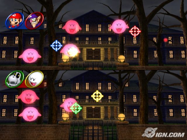 Boo-ting Gallery has you and your teammate blast pink boos as you infiltrate this spooky mansion.