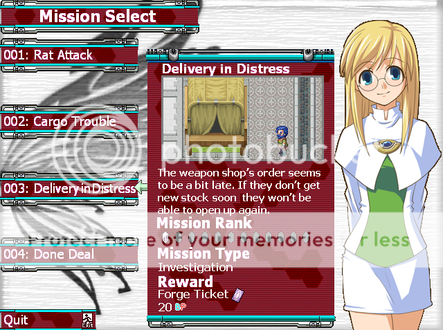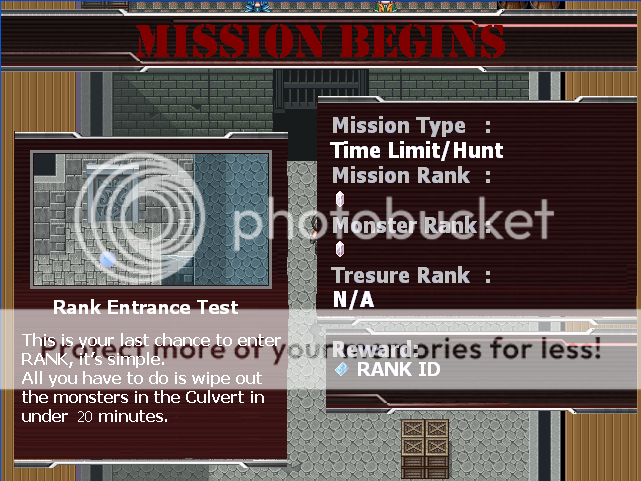 -Rank and Mission system. In the Game you will have over 200 different mission (Currently working on the 89th one-and it's not easy to come up with 200) When you complete a mission you will obviously gain a reward but also every 5 missions you complete will allow you to move up a Rank. Starting from 20th all the way to 1st. Every time you go up a RANK your Level will reset but with greater base status then before e.g. Rank 20th have a base HP of 300 and Rank 19th will have a Base HP of 500. So the Higher Rank you are the stronger you will get. After the First 2 chapters of the game, missions will be voluntary, meaning you don't have to do it to complete the game. Credits go to me
