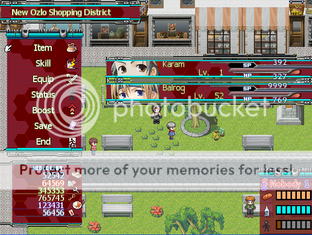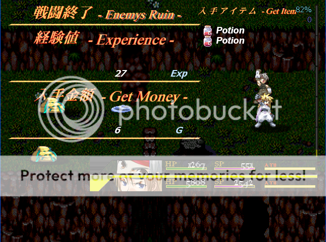 Looking good. :) A lotta refreshing scripts you're using there, kudos. However, for the battle system script, if you can I suggest taking out the Chinese and Japanese text for the battle finished screen and perhaps fix up the English part there, their translations weren't that good, heheh. A few maps are still a little too squarely, but they are definitely above average now.