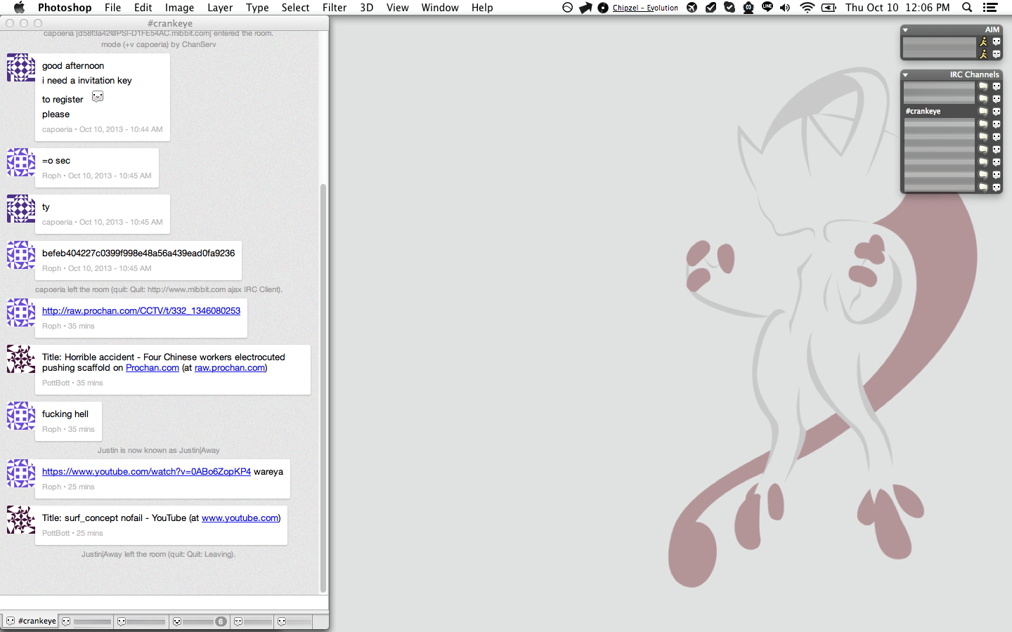 Bonus: action shot with Adium open.  How my IRC looks.