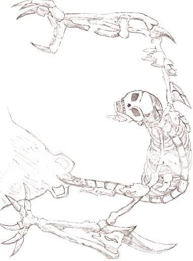 Here's the colours i was thinking, the bones would be a bone colour  ::) The patches of flesh would be kind of a rotten skin colour and the hip part are would fade from bone to solid black as you get toward the bottom.