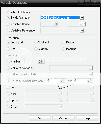 You could add a bit more and use Variables to add a bit of "chance" to it. You can basically make a variable of "If Sandwich is cooking, what are are the odds of it working?", so Variable 1: Sandwich cooking can triggered when you hit the sandwich icon (Along with the Bread and Lettuce switches). When this is done, you can goto the Variable side of things, so "If Variable 1 is on, use random variable numbers for the probability of sandwich cooking succeeding", after this point you can do what you want with the numbers, make it random as shown here: