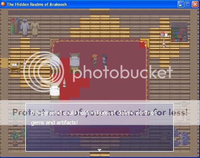 [spoiler]araksosh is a realm next to our own (ooo how original) that there are various but uncommon ways of getting into however getting out is not so easy you must have something binding you to the normal world or there is no way to get back without another who has a binding object in this story our heros devin(you) steven(the not so wise know it all) and jack(the nimble yet tough technical guy who picks locks and lays explosives) they are a team of thieves and quite experienced at it but one day (as per the demo) they are trying to steal some artifacts from a pyramid that was abandoned by the archaeologists due to a sandstorm they (to put it bluntly) found a strange necklace and were sent into araksosh most of the game will be about what happens to them whilst they are there [/spoiler]