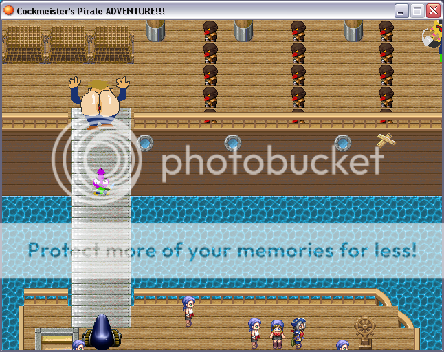 In the mystic seas of planet BALLSAX, our planet's defender, Cockmeister, has awaken to find that he has mysteriously ended up on a pirate ship. The pirates on the ship greet him cheerfully, including Captain Lamebeard and that sexy lass, Pirate Chick. SUDDENLY, the ship is set rocking as a cannon ball hits the ship. The attacker is none other than the most EEEEVIL pirate to have ever sailed the TWENTY FUCKBILLION seas, Captain Schlongbeard.
