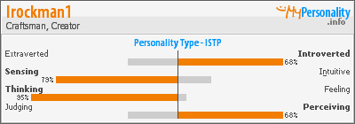I took it, then read everything I found on my personality info page. It's scary how accurate this is. Especially when it got to the relationship section. It pretty much described me. My favorite part was where it was like - "Is a born leader, but stays in the background until their leadership is needed". Haha. Born leader... *goes to form a mafia*