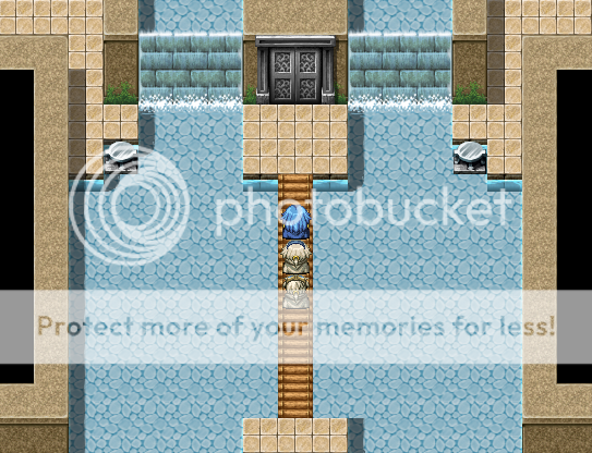 it looks rather good for a VX game, I'd suggest not using the RMXP battlebacks though, just because MASSIVE DOORS and little bitty midget people.