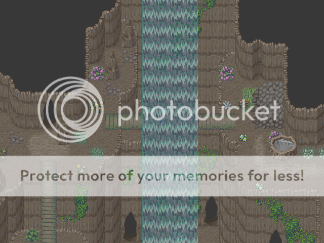 Lovin` the waterfall in the cave. Not sure if you can do this (haven't mapped in a long, long, long, long time), but perhaps, in the water fall itself, you could add...Layers, if you get me. Uh, crap explaination. As if some rocks were poking through. You know what? http://img408.imageshack.us/img408/3153/waterfalla.jpg (Lev's image, obviously VX). That'd be interesting if you could pull it off in XP.
