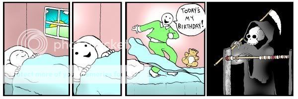 Lol, "Another year older, another year closer to death."?