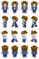 Okay, so here's the deal.  I'm writing a novel, and perhaps the most important character in it is a guy named Fang.  He's not human, but something called a vaari, which is almost human but can turn into an animal and a few other things.  So, Fang always has dog ears instead of human ears, he has unnaturally bright green eyes, and he prefers to be barefoot.  I used various bits and pieces of charsets that come standard with XP, modified some of them, and made a Fang charset using Adobe Photoshop Elements.  The up and down frames worked perfectly, but the right and left ones didn't.