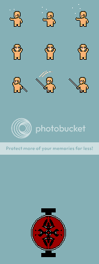 figured I'd take a crack at that sword. as for the character, i may bother to do the hair on him, but you're on your own for the battle character. as for that, try using parts from the various walking pose to form the battle animations. I know it sounds weird, but if you really look at the characterset, you'll see that some of the parts can be manipulated to meets your needs. also, you already have your walking poses (yes, i know, you need hair recolored). well, I'll see if I can make your job a little easier, but don't hold me to anything.