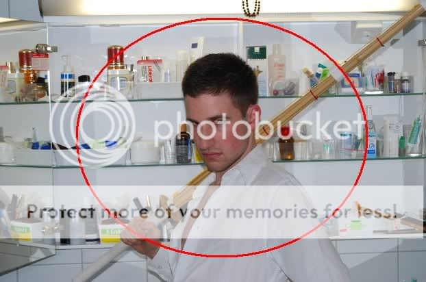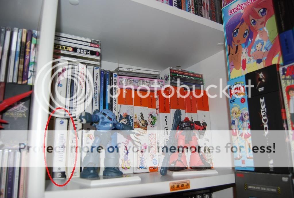 The idea of the game is simple, yet it is excruciatingly hard (for many reasons). One person names an object that they see in the room, and the next poster has to post the picture of said object with the item circled. The poster who found the item then names another object in the room, and the next poster does the same thing. For example, one person says "I spy a pink Dreamcast", and the next poster has to painstakingly search through all the pics of the room to find at least one image of a pink Dreamcast and circle it like so. After posting the pic, they then say "I spy Wolf's Rain dvds", and the next poster must seek out Wolf's Rain in the pictures. The poster can make this as easy as he wants, or as difficult as he wants.