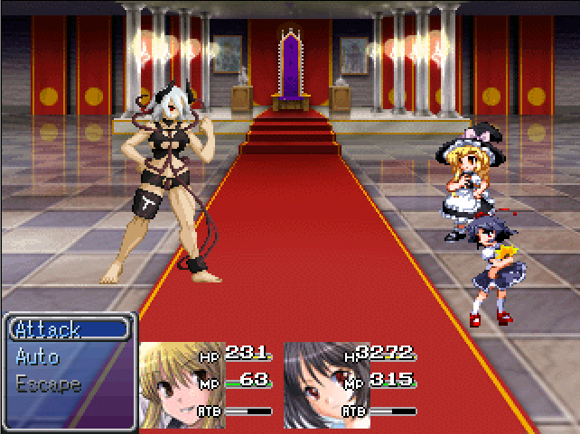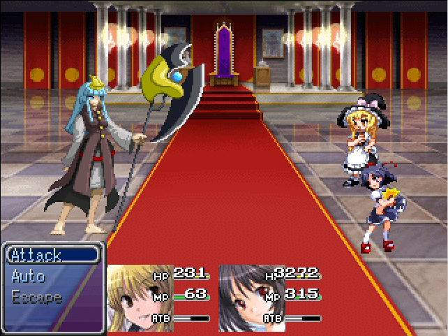 Cirno: Standard offensive unit. Is a check to see if the player brought the Barrette helmet or Anti-Freeze items to prevent/cure Freeze status. Nothing else too special about her right now.