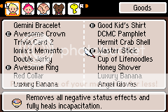 LOL sorry about that. The 3rd screen shot is the item menu. Also just so there's no confusion "Goods" is used instead of "Items" in the EarthBound Series.
