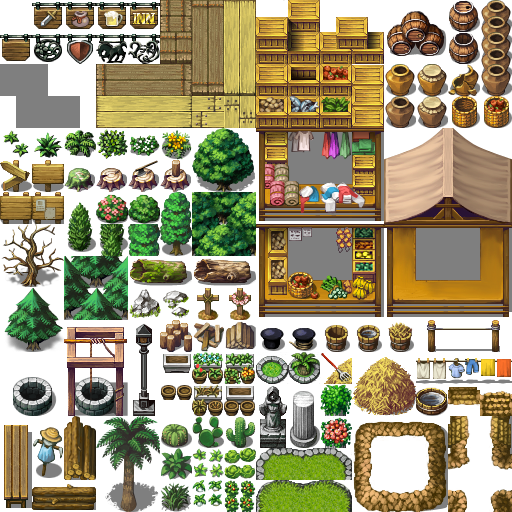 If you look up MACK's tilesets, I know there are 4 tiles that are for hay and then a variation of that with a pitchfork in it as well.
