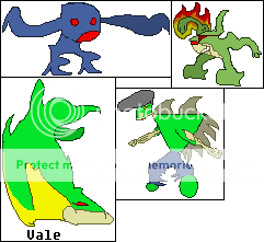 A while ago I set up a topic (Around february) to show a attempt at trees. And recently I found some scribbles that looked like monsters or lizardy people. So I re-drew them on computer and I'm trying to see if they would pass as battlers (Side-view).
