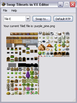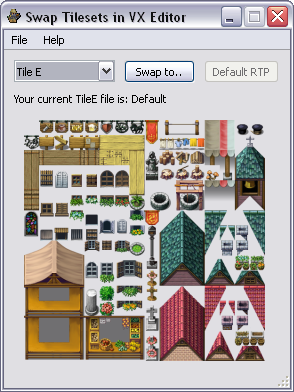 This software is a small GUI meant to be used while you are mapping in VX editor. The use of this softare makes sense if you are using my script Swap Tilesets . While mapping, by simply clicking on the appropriate button in the GUI, it will swap the tileset to the new one and it will show directly in the VX editor (by clicking on a new map in the list). It is very easy to use and can be very useful while mapping.