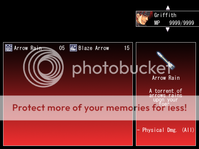 Similar to the equipment menu where the right-hand box works as the help/info box with a picture. If possible, when using healing skills, have a box appear in the blank space similar to the character box already there to display the spell's target.[/spoiler]