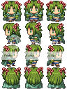 I have decided to use a different sprite for Rydia; the one I modified just looked... odd to me. Here is the heroine herself, in what may be her final form. Thanks to the Famitsu character generator and the free Gimp program!
