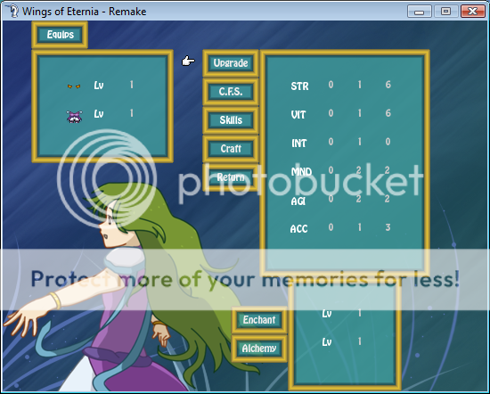 Switching this project over to remaking Wings of Eternia 1 because my first go at it didn't go so well. This new remake will include a new storyline (some things might seem almost connected, but over all it's new). Battle system is still the same combo but will have new features to it. Also I'm doing all the graphics myself and hopefully will be able to run without using any RTP.