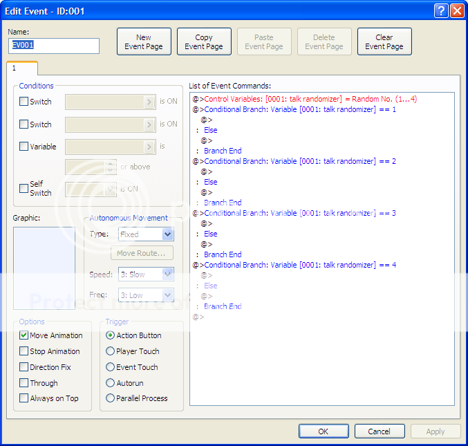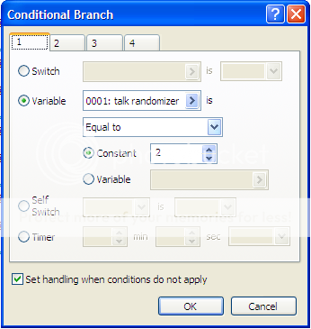 Step 6. Make a Conditional Branch. Make the condition "talk randomizer is equal to 3".
