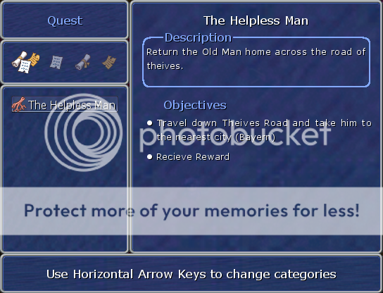 *Remember, this is a demo game, so many of the listed story arcs are in the updated version that I possess and have not yet released to the public for testing purposes. The story and 99% of the game is on paper, all that's left is to actually put it into the game. With college coming up though, it may take longer than the planned release date: End of September - Beginning November 2010.
