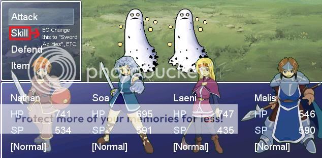 • The ability to change the battle word "Skills" for other words that are specific to the characters. The Status Menu's "Skills" can stay the same if you can't manage to change all of it. XD