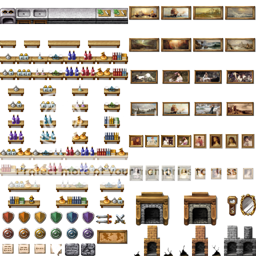 [spoiler]The kitchen and the paintings are meant to span over two tiles in height.