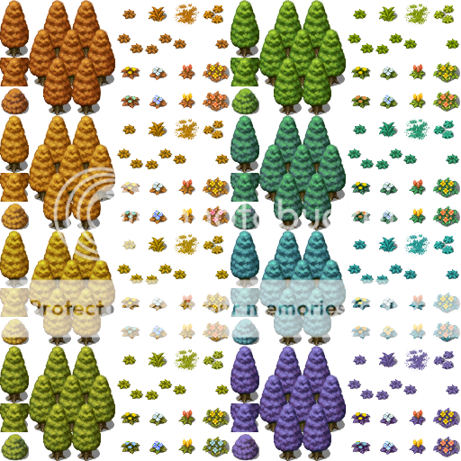 Sideways furniture is the only thing that required legitimate effort to make, the rest is just some really simple copy and paste + hue slider abuse.
