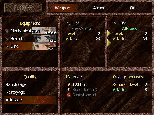 Reincarnations is originally a French RPG Project. Hence, you might still see in this topic (especially in the screens) some French word that have been left untranslated at that time. They are now translated in the game. However, there might be errors in translation (I don't speak like a native).