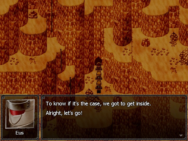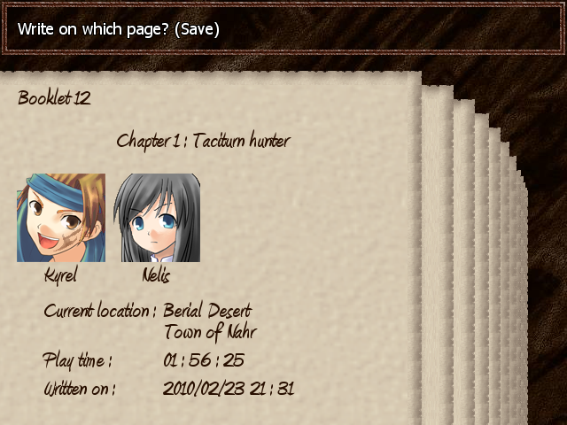 The story is organized by chapters, each chapter being a part of Kyrel's notebook. Sometimes, the notebook will miss some parts. Eus will have to search for the lost parts in the ruins, by finding some clues or remembering some facts. Only when the parts are found, that the main story can continue.