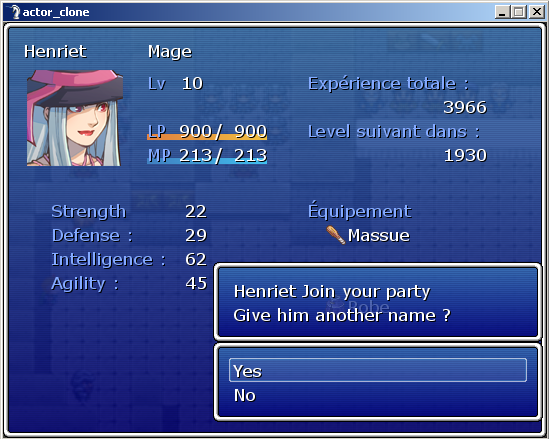 (optional) : The script can ask the player to rename the actor added and display the status screen :