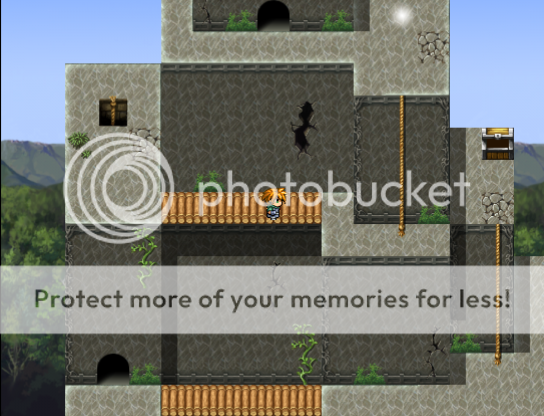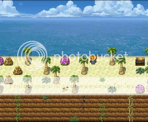 I like your concept of the chest being pushed up by a spring in the ground, though it took me a while to figure out what was going on at those two pics. That being said, I don't think you should mix XP tiles with VX ones. They clash badly.