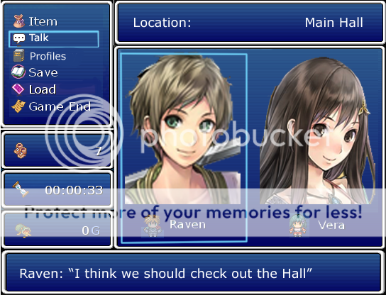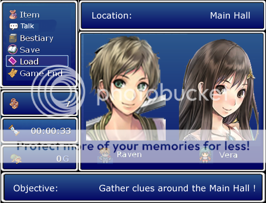 Basically a custom menu with extra windows on bottom of the menu that shows current objective (or pointers what they should do) for players AND "TALK" script for players to communicate with the party members and hear what they are thinking.