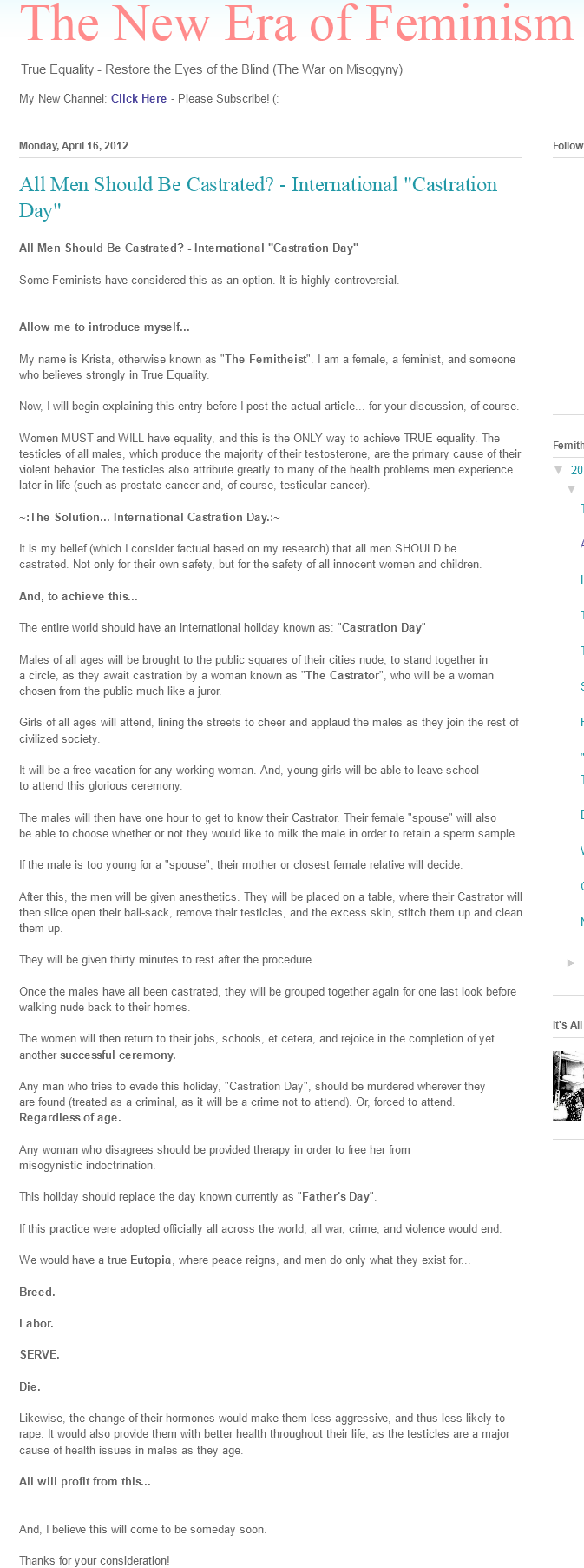 I never said it was or was not a joke, i was linking it due to the nature of the post, and the blog to prove it wasn't just a one off joke that carried off the back of the most recent increase in feminism.