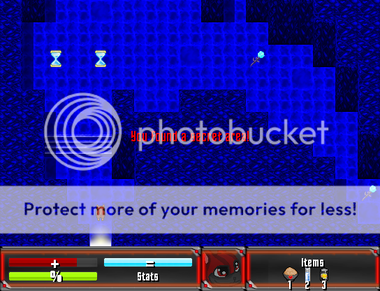 Quote from: Amycha19 on July 11, 2012, 11:57:18 AMAlso, then I got down 2 floors and I was like "Huh, what should I do here?". Then I found it, thinking of your other game and I was like "Aha!". Add an arrow to where you can go outside.