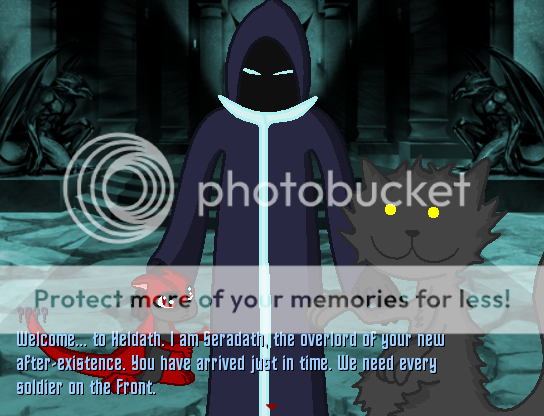 [spoiler]Hellcat had enjoyed his 4 years of life, dwelling in his mansion and blissfully anaware of Maw's presence on his home plane. One day on his weekly shopping trip, he is greeted by a fissure, a fissure to Heldath itself. In time, it would be learned that Heldath isnt all that bad, and if its residents are to be beleived, Gal'vana is worse for its smug factor, everyone is said to be an arrogant self-righteous douche. An encounter with a one winged angel only cements it.