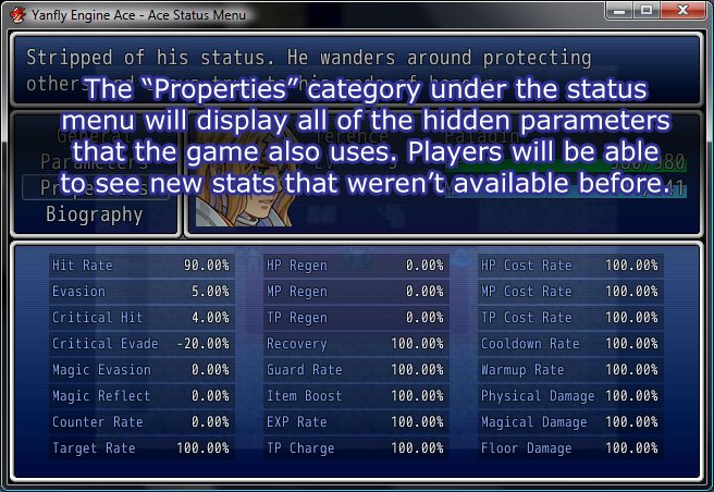 So I'm using Yanfly's Status Menu script (link below) and I like everything about it - the only issue is the Properties section:
