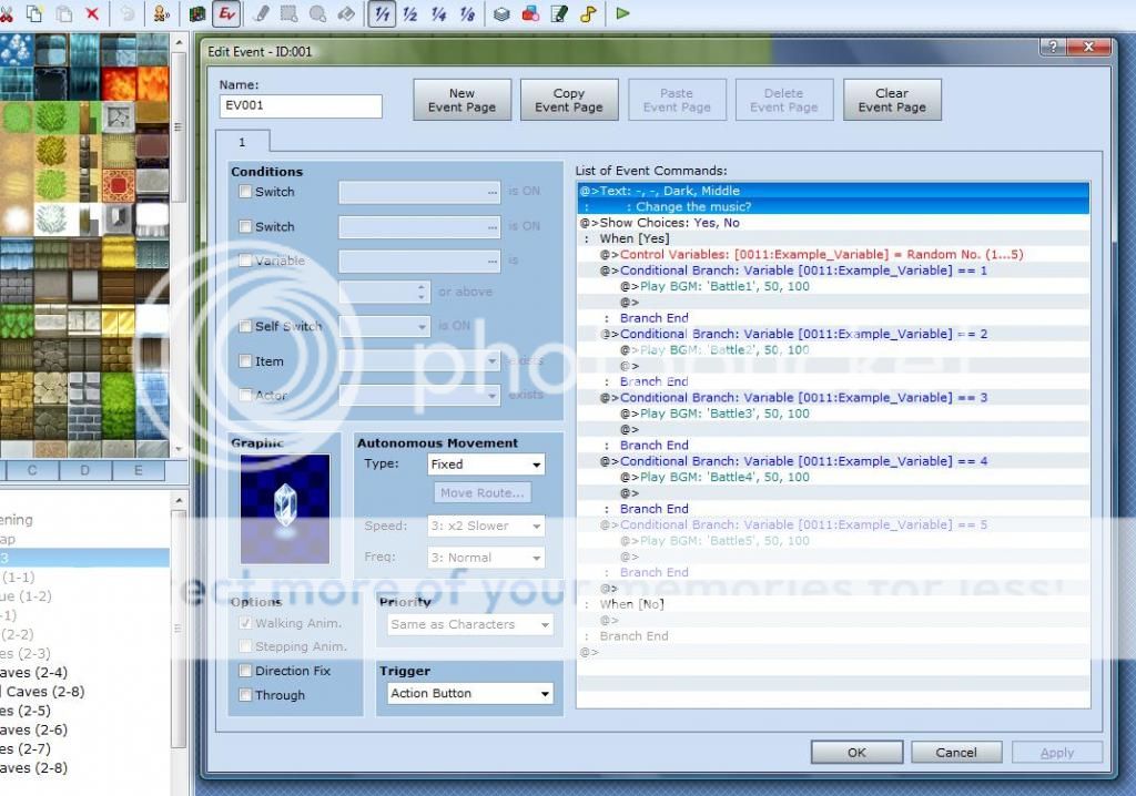 There is probably a way to code it in an event even in an easier way but it's time for to o to bed so i'll think about it tomorrow with fresh mind :) Hope that this helps for now XD