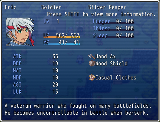 This script adds a hunger, thirst, and sleep deprivation system to the game. If the players hunger/thirst/sleep levels get to high its stats start to drop. If the players hunger/thirst/sleep levels reach max the player could die. This script is highly customizable.